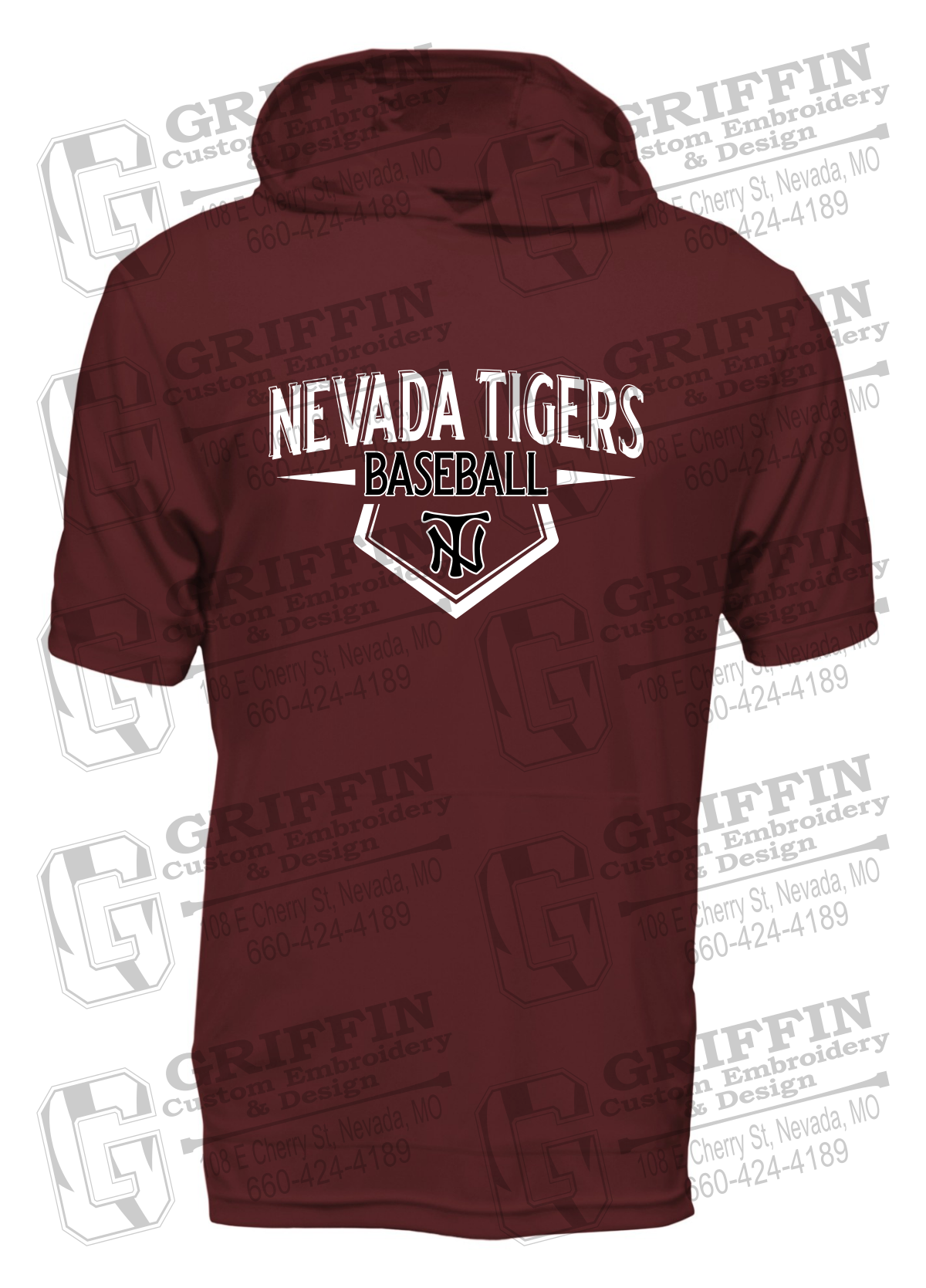 Dry-Fit Short Sleeve T-Shirt Hoodie - Baseball - Nevada Tigers 24-W
