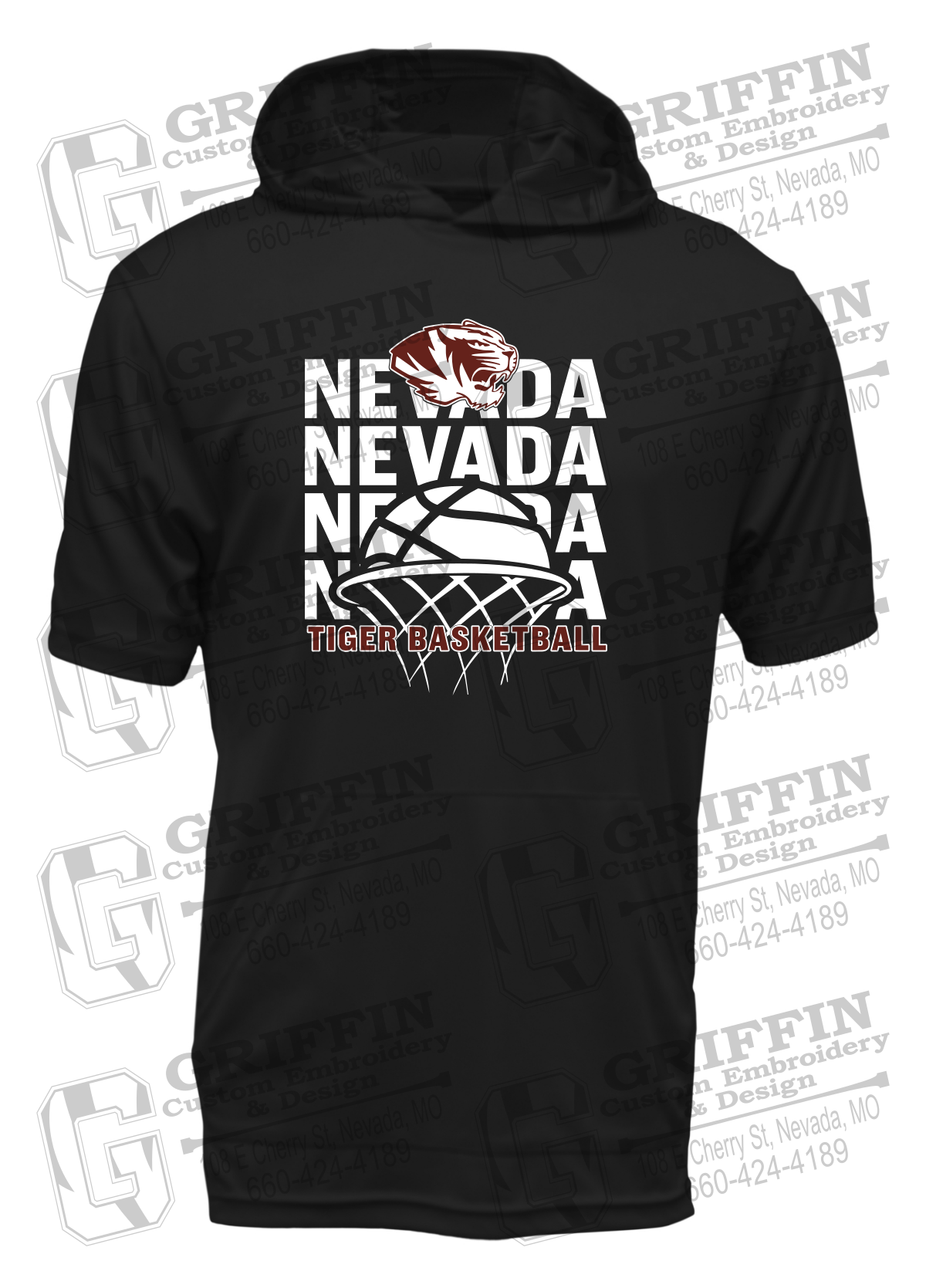 Dry-Fit Short Sleeve T-Shirt Hoodie - Basketball - Nevada Tigers 26-L