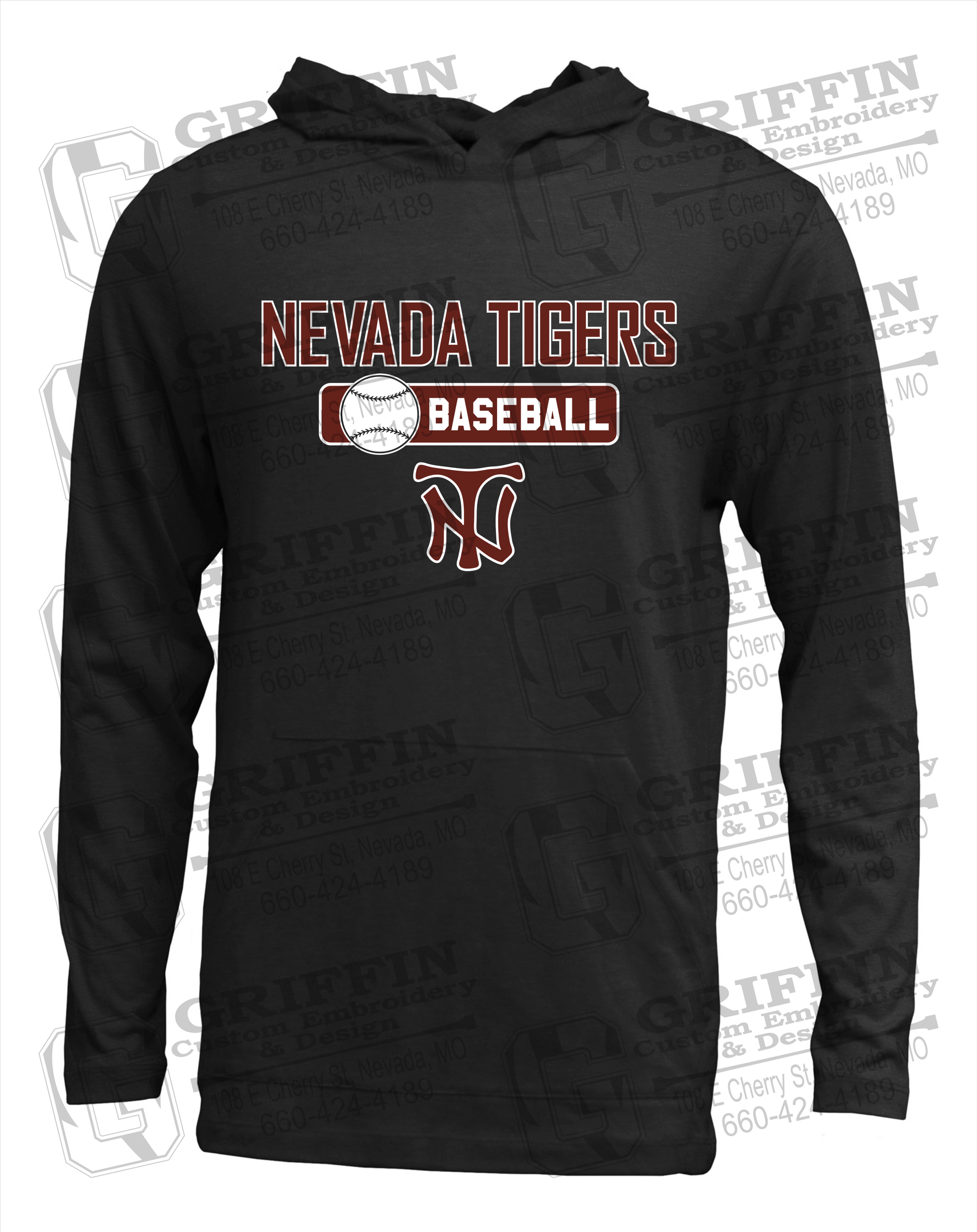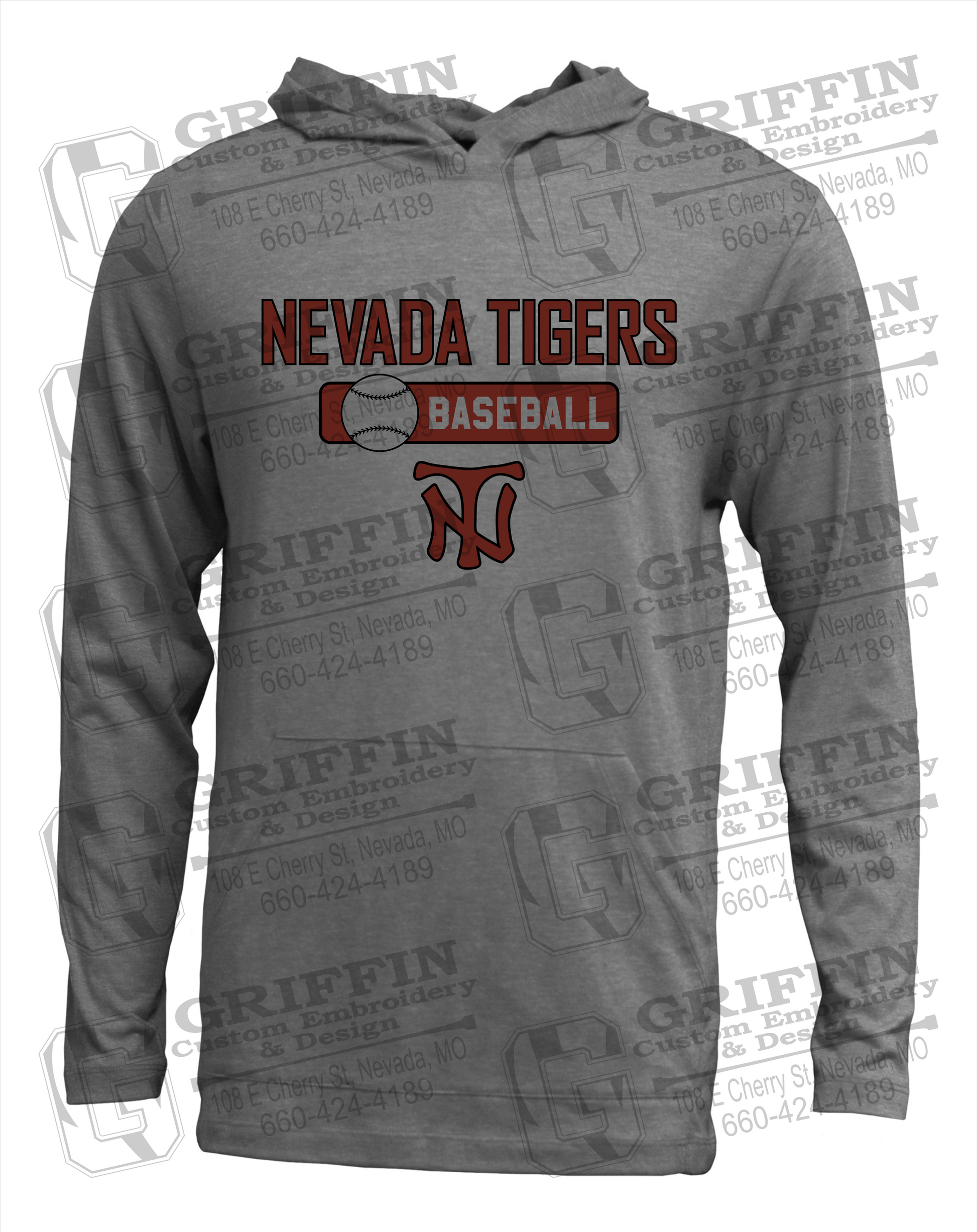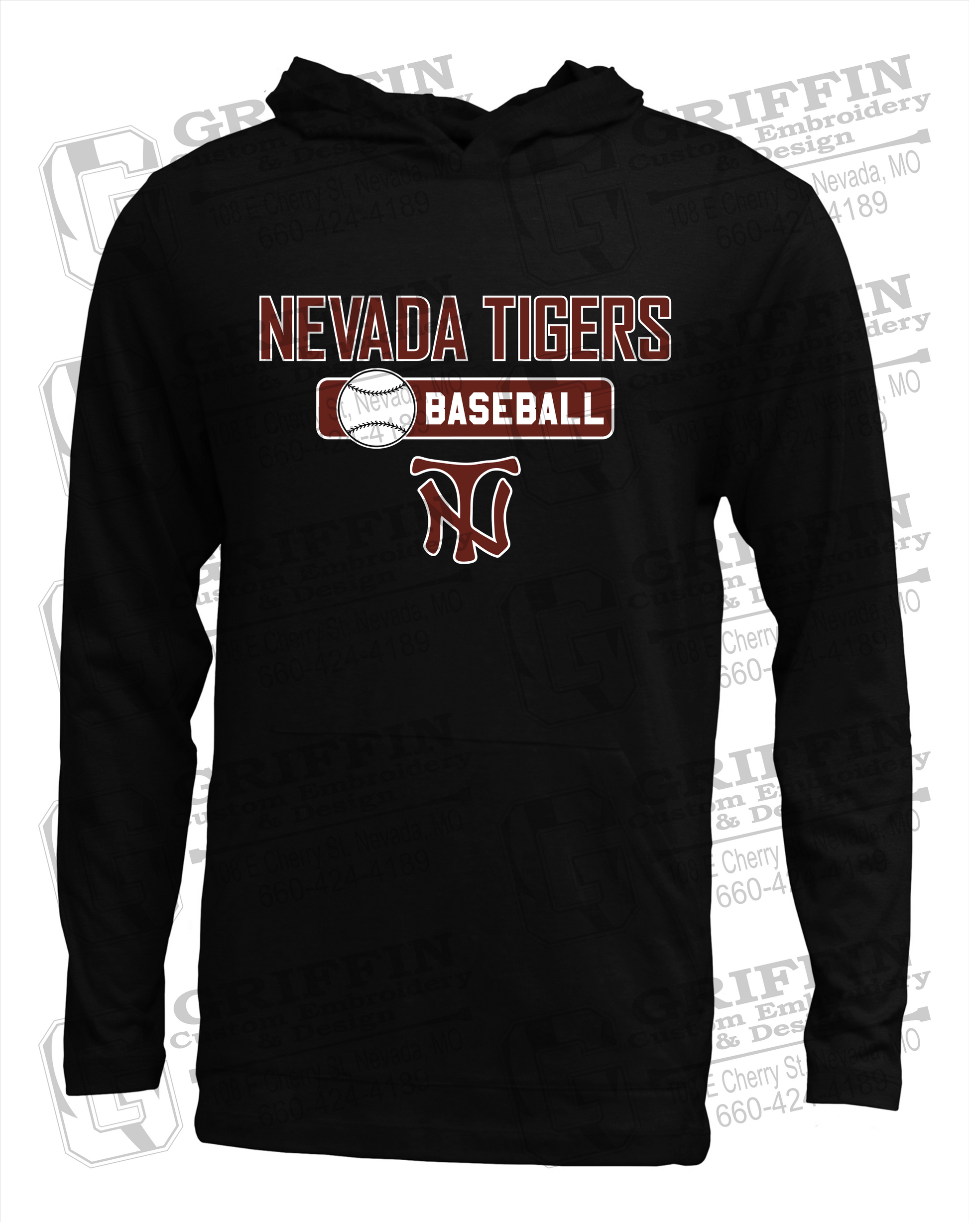 Soft-Tek T-Shirt Hoodie - Baseball - Nevada Tigers 24-S