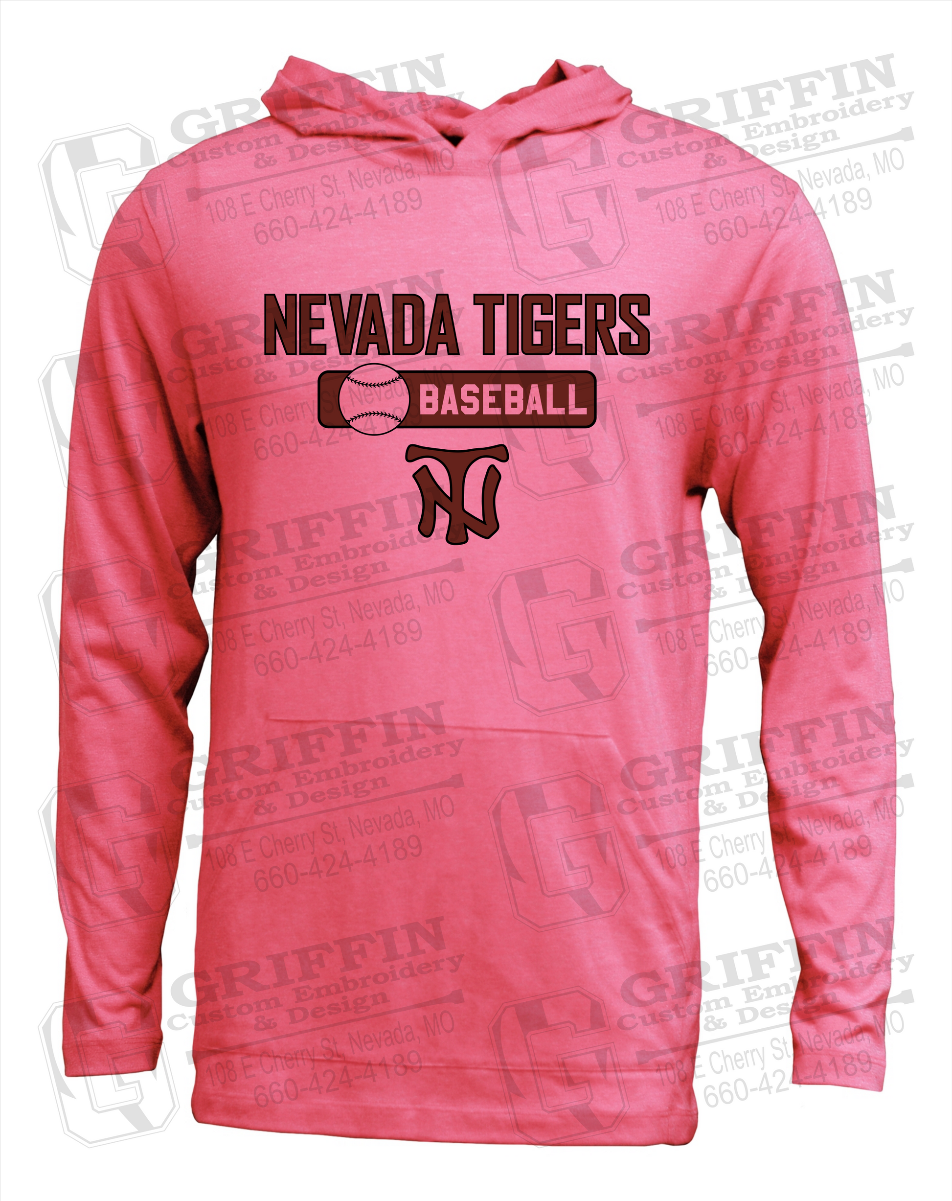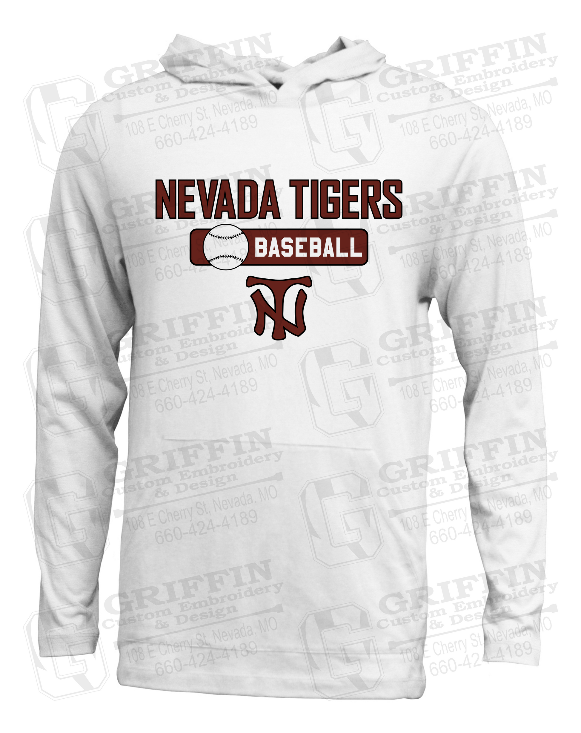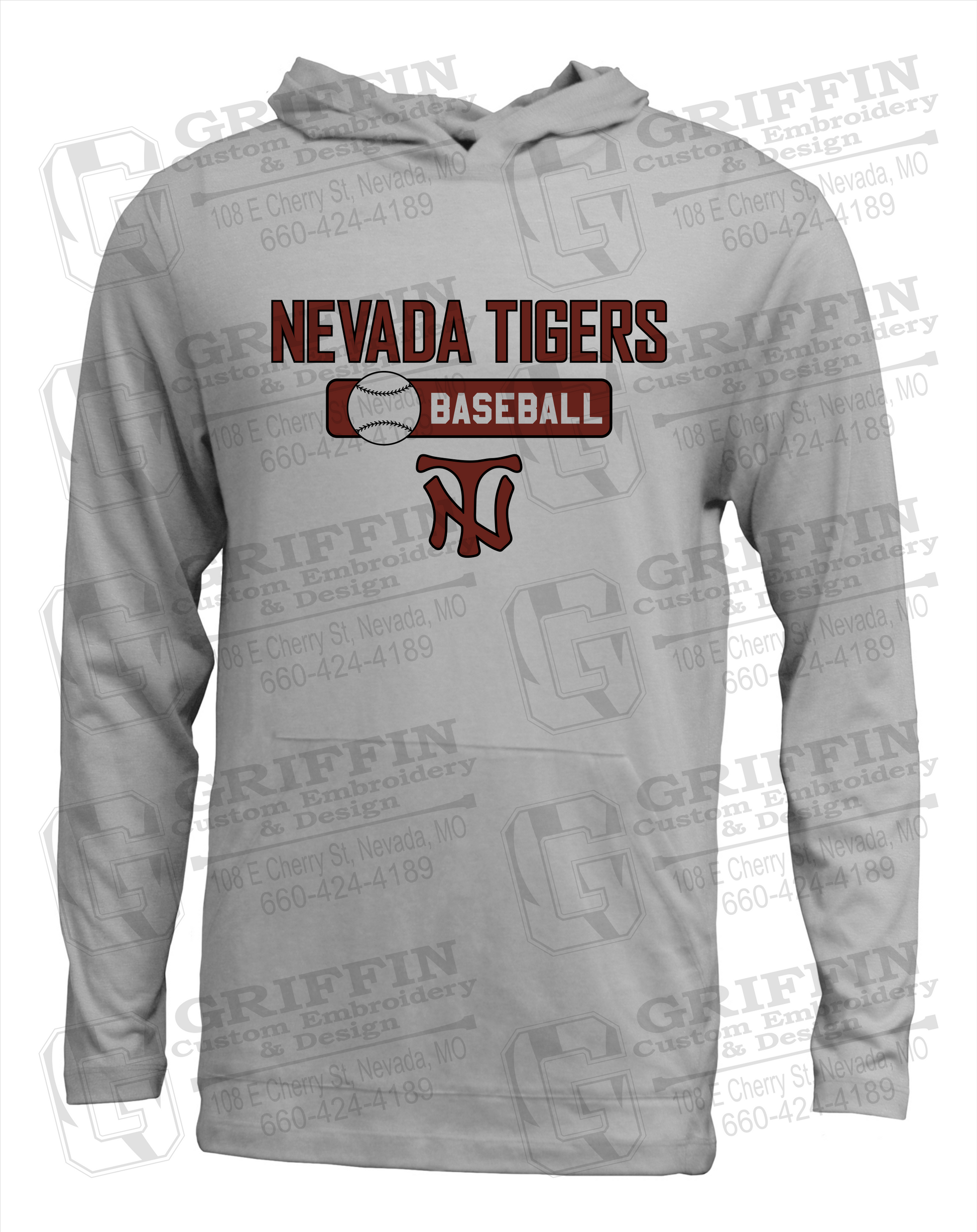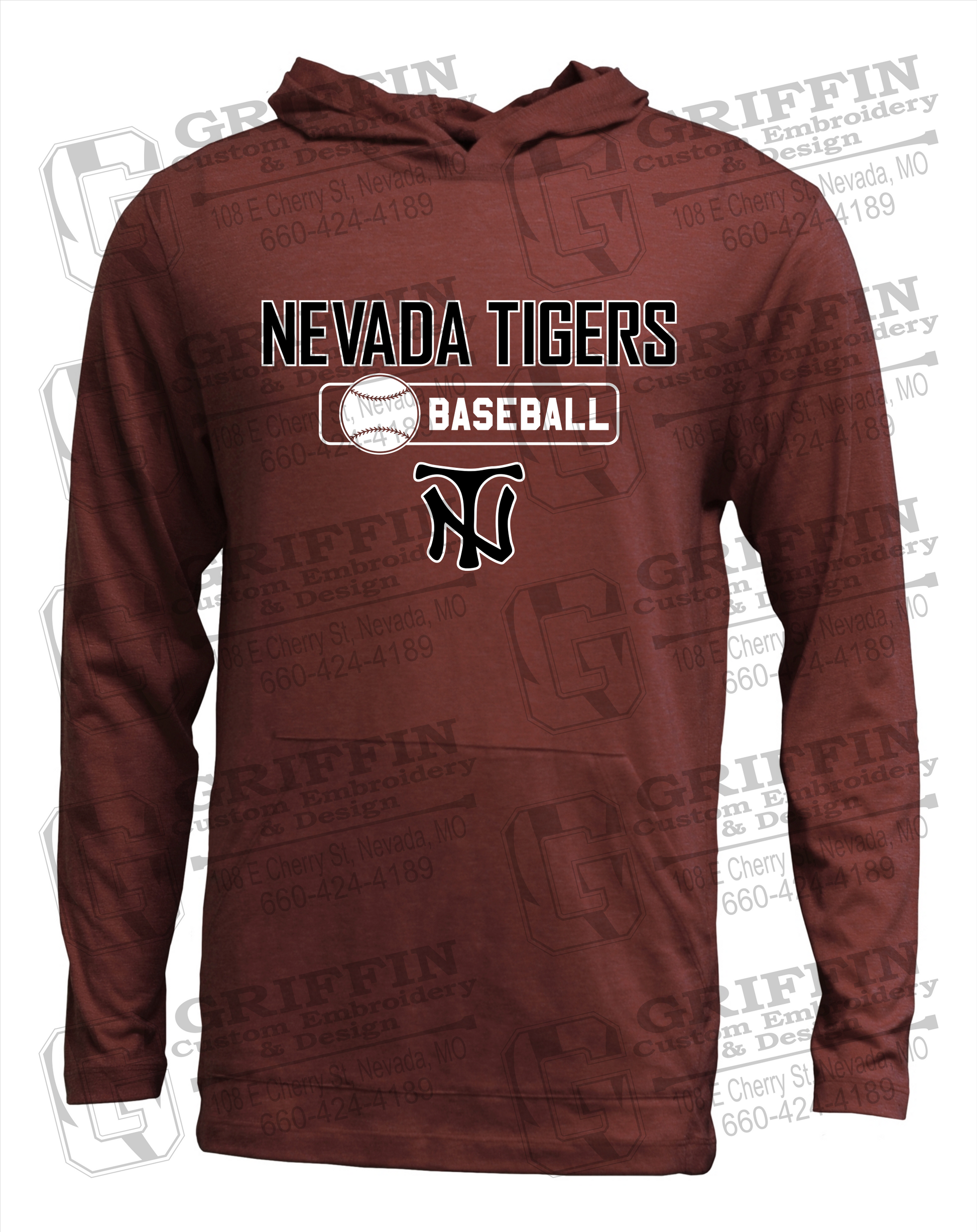 Soft-Tek T-Shirt Hoodie - Baseball - Nevada Tigers 24-S