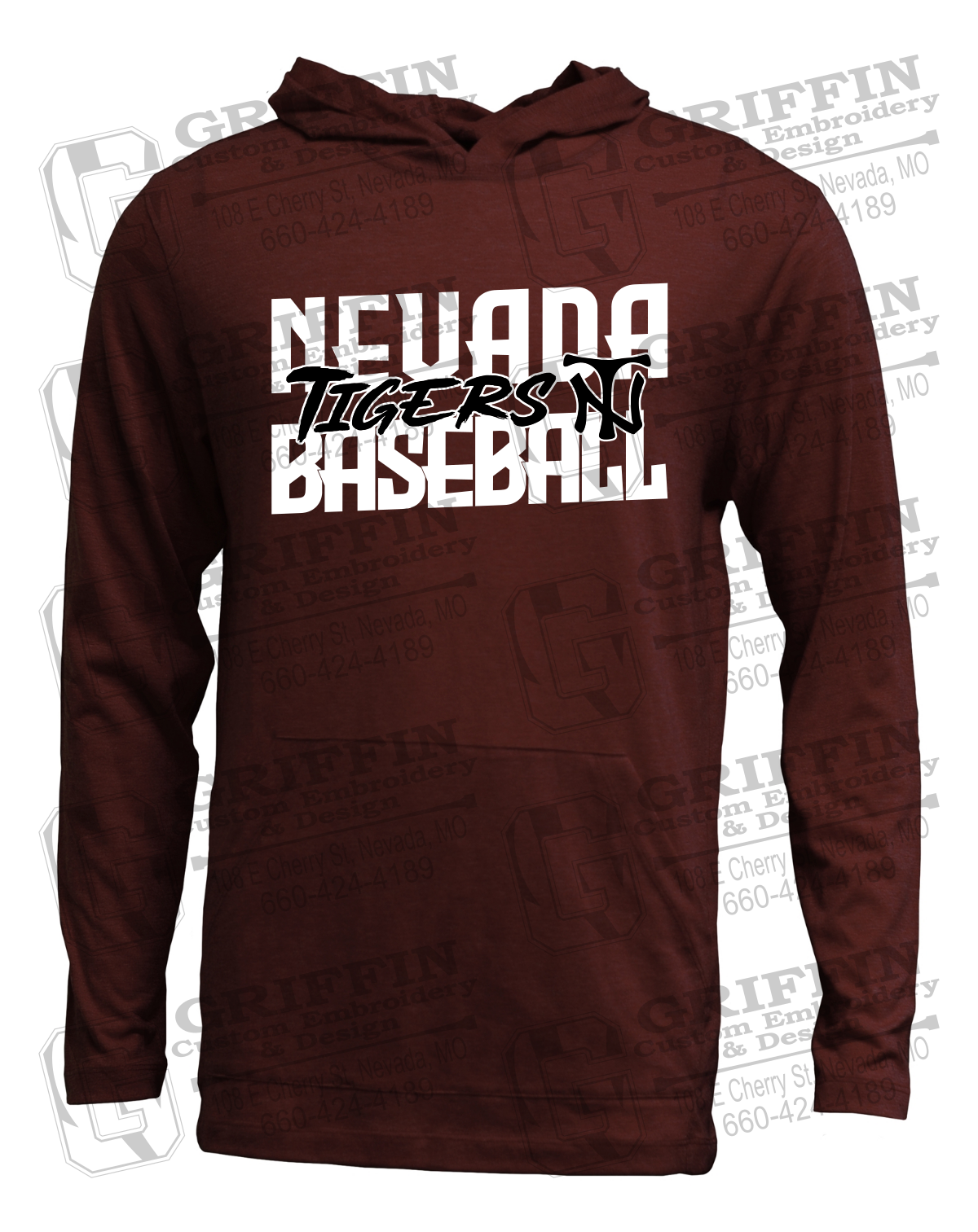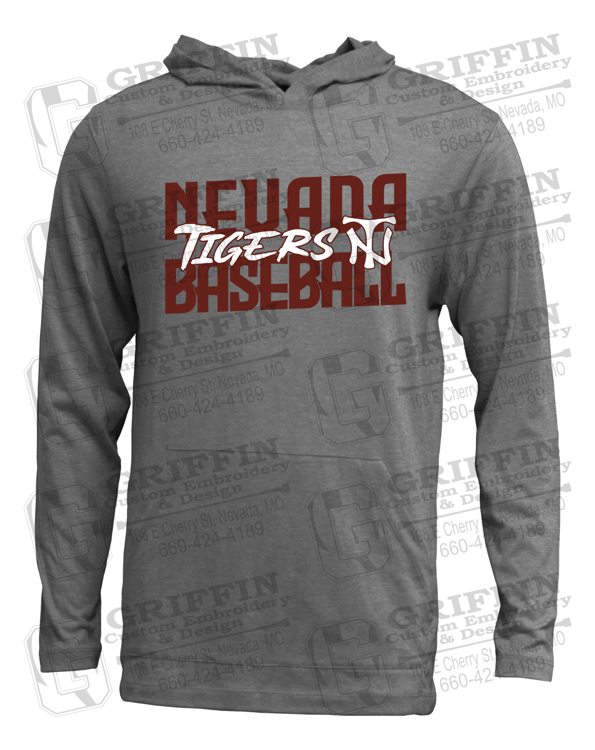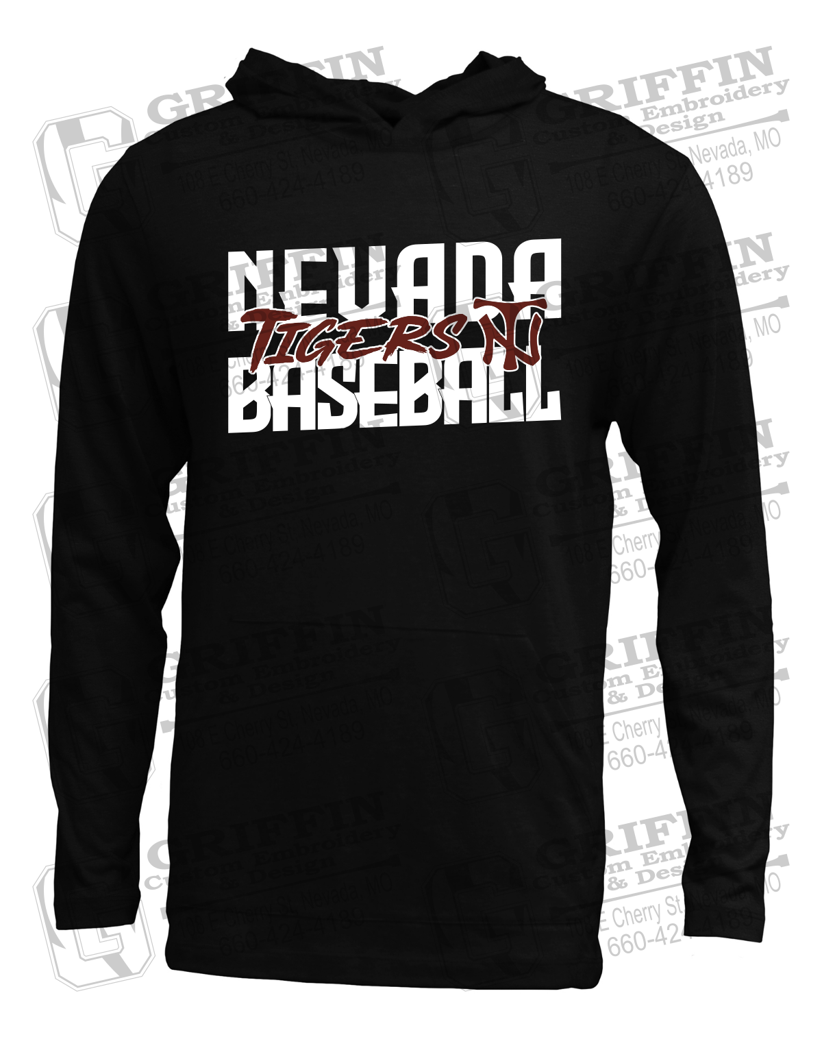 Soft-Tek T-Shirt Hoodie - Baseball - Nevada Tigers 25-V